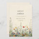 Este convite de casamento elegante apresenta um delicado fundo creme adornado com uma variedade requintada de flores silvestres. Tons suaves de rosa desmaiado, lavanda suave e verdes discretos criam uma atmosfera caprichosa e romântica. As flores silvestres são artisticamente dispostas em torno das bordas, enquadrando o texto com um toque natural e charmoso.