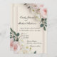 Este belo convite para o casamento apresenta um arranjo delicado de rosas brancas e cor-de-rosa, perfeito para uma celebração romântica e elegante. O sutil fundo embutido com um simples verde cria um eterno e um sentimento de classe para o seu dia especial. Totalmente personalizável, este convite é ideal para casais que buscam um toque sofisticado e floral para o seu casamento.