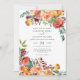 Este adorável convite para o casamento, tema do outono, apresenta belas buquês de flores do outono e folhagem do outono. A floral de aquarela de outono inclui rosas, mães e borboletas em tons de queda bonito de pêssego, ameixa, vermelho empoeirado, borrado e laranja queimado. Personalize com seus detalhes de casamento usando o modelo. Matando papelaria de casamento disponível na nossa coleção de casamento "Autumn Elegance".