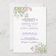 Convite de Casamento com design Floral. Delicada borda de pétalas rosa e azuis com folhas pastéis suaves da arte da aquarela. Personalize com seu próprio texto.