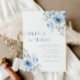 convite para casamento floral azul empoeirado de aquarela. O texto e as cores podem ser editados.