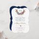Design romântico, elegante, com traficantes embelezados com cor d'água azul poeirento, buquê de flores negras, divisor maravilhoso, falso folheado dourado celebração de casamento com letra de caligrafia e atrás de um fundo azul marinho. Use a ferramenta Personalizar para adicionar suas informações. Para encontrar itens, por favor, visite minha Coleção de Flores de Rosa Azul Dusty.