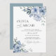 Trendy Watercolor posty azul convite para o casamento floral. personalize o texto e as cores
