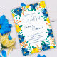 Convite de Casamento Floral Azul Romântico Amarelo