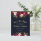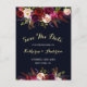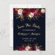 COR DE FUNDO MUTÁVEL. Convite de casamento elegante estilo boêmio com ilustração de aquarela de peônias e rosas burgundy, marsala, vermelhas e rosadas com sotaque de penas em fundo azul-marinho. Isso é perfeito para eventos de outono/inverno, floral e boêmio. Itens correspondentes também estão disponíveis.