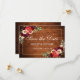 Cartão de Anúncio de Noivado e Convite de Casamento Floral Boho Burgundy Marsala em Madeira Rústica