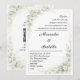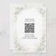 Um conjunto de convite de casamento floral boho refinado apresentando uma moldura de eucalipto em aquarela em verde suave sálvia e marfim. A frente apresenta um layout minimalista elegante com um centro limpo para texto personalizado, enquanto o design da parte traseira correspondente é ricamente decorado com elementos botânicos e inclui um espaço dedicado para um código QR - perfeito para RSVP, site de casamento ou detalhes do evento. Romântico, orgânico e atemporal, ideal para casamentos modernos de jardim ou inspirados na natureza.