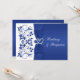 Este elegante convite para o casamento floral azul e branco tem uma fita IMPRESSA e arco com um par de joias de diamante IMPRESSAS e brilho azul FAUX uniram corações. ****POR FAVOR, OBSERVE que não há gravações neste cartão ou imagens levantadas. TAMBÉM, o Zazzle NÃO editará nada para digitar, alinhamento ou espaçamento, portanto, certifique-se de que seu texto seja exatamente como você deseja. Não verei o seu convite, por isso, se precisar de ajuda para personalizar o meu design, por favor, envie-me um e-mail ANTES de pedir. Tudo está impresso em forma plana. Pode também ser utilizado para vários outros eventos especiais, como um aniversário ou noivado. As escolhas de texto e papel são totalmente personalizáveis, mas NÃO sugiro mudar o papel para o metal prateado ou dourado, pois eles são muito escuros e irão alterar a legibilidade e a aparência do design. Outros papéis também podem alterar as cores. Se necessitar de itens correspondentes, envie um e-mail para niteowlstudio@gmail.com.
