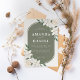 Convide seus entes queridos com este sofisticado e romântico convite para o casamento, apresentando flores brancas pintadas à mão e verde-azul em um fundo verde-oliva profundo com um quadro em forma de na moda. Perfeito para casamentos rústicos de vinhedos, cerimônias elegantes de jardim e celebrações botânicas modernas. Recursos de Design 🌿: fundo verde-oliva com elegantes jardinas brancas e jardins verdes, design de moldura de Arch para uma moderna forma romântica. Fontes de serifa clássicas, pareadas com elegante guião manuscrito Ideal para casamentos rústicos, vinhedos, botânicos e de jardim Totalmente personalizável para ajustado de seus detalhes exclusivos de casamento.
