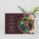 Este convite de casamento burgundy romântico apresenta flores desenhadas à mão em tons suaves de blush, pêssego e ameixa, combinados com elegantes detalhes em dourado e uma foto personalizada emoldurada em um diamante geométrico. A rica paleta de tons de joia torna-o perfeito para casamentos de outono, locais de vinhedos ou celebrações rústicas românticas. Uma maneira linda de mostrar seu amor com calor e estilo artístico.