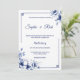 Convite de casamento floral clássico azul