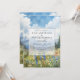 Este convite de casamento elegante, apresentando uma aquarela de um prado de flores silvestres da montanha, pode ser personalizado com suas informações em tipografia sofisticada com o código QR do site do seu casamento no verso. Concebido por Thisisnotme