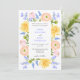 Este convite de casamento lindamente desenhado apresenta uma delicada moldura floral com rosas pastéis, ranúnculos e acentos de lavanda. A tipografia elegante e os elementos de aquarela suave tornam-no perfeito para um casamento romântico no jardim ou ao ar livre. Personalize com seus detalhes para um toque pessoal.