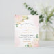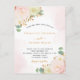 Um fundo branco com pincéis de cor rosa pincelado e rosa dourado com pinceladas de cor d'água. Decorados com flores impermeáveis, rosas cor-de-rosa floral, orquídeas brancas e gerbera amarela, verde eucalipto e borras de ouro falsas. Personalize e adicione seus nomes e detalhes do casamento. Letras pretas e ouros coloridas. Traseiro: design postal. Dica: Se você não quiser que pareça um cartão postal, clique em personalizar, vá para o verso e remova o divisor e o carimbo de posto.