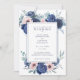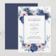 Um elegante, marinho de aquarela azul e rosa floral cor-de-rosa pincelado e design de folhagem Convite de Casamento com uma cor azul escura na parte de trás do cartão. Esta placa de classe e na moda está pronta para você personalizar com fontes de sua escolha ou sair conforme mostrado aqui e adicionar seus detalhes para seu dia especial.