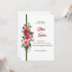 A design apresenta flores brancas, encarnadas, verdes e brilhantes e graciosas de aquarela no lado esquerdo do convite, inspirando beleza natural. Personalize o texto às suas necessidades.