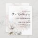 Um valor para o alternativo do ORÇAMENTO em tamanho menor de 4,5 x 5,6" de semirbrilho de 110 lbs, que é de espessura semelhante a um cartão postal (no entanto, não é adequado para uso como cartão postal). POR FAVOR, OBSERVE QUE HÁ UM convite por folha. Convite De Casamento Por Aquarela De Florais Brancos. Um design floral minimalista em branco suave e cinza até o canto inferior esquerdo e uma lavagem pálida em azul sutil e rosa no fundo. O Casamento está em uma escrita moderna e personaliza facilmente o resto do texto.