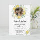 Convite de Casamento Floral de Aquarela Elegante Este convite floral de aquarela amarela apresenta um ponto de círculo para a sua fotografia para a personalização suprema. Adicione o texto com os detalhes do evento. Este convite também será adequado para um casamento, chá de fraldas, graduação ou festa de aniversário.