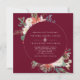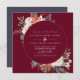 Apresentando dois buquês festivos de cor de água floral e de morango em branco, verde e vermelho atrás de um quadro circular, em fundo burgundy e texto branco contrastante, este convite é perfeito para o seu casamento no inverno. O reverso está em azul de ardósia sólida.