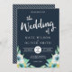 Convide amigos e família para o dia especial com este Convite de Casamento Azul com lindas flores de aquarela. Este convite também inclui um lado traseiro com padrão. Personalize essa data, substituindo o texto do marcador de posição no modelo. Para obter mais opções, como alterar a fonte e seu tamanho, clique no botão "Personalizar". *Observe que a Marca d'água do Zazzle que aparece na visualização de zoom não aparecerá no produto impresso final. © Rosewood e Citrus