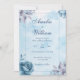 Este elegante e floral convite de casamento apresenta rosas de aquarela azuis e folhas em um fundo de aquarela azul são perfeitas para um casamento com tema floral.