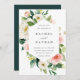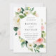 Blush Bloom Wedding Invitation apresenta flores de aquarela pintadas em folhagem cor-de-rosa, branca e verde-esbranquiçada com quadro de Hexágono. Para personalização mais avançada deste design, clique no link "Personalizar mais". Itens correspondentes também estão disponíveis.