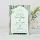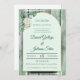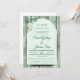 "Um convite de casamento maravilhosamente projetado com texturas de cor aquosa verde macia com sotaques florais brancos elegantes. Este cartão "save-the-date" mostra uma citação romântica, fontes de caligrafia de na moda e um layout limpo com detalhes personalizáveis para o dia especial do casal. Perfeito para casamentos modernos, minimalistas ou com temas de jardim."
