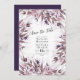 Convite de casamento floral de country art, no fundo da meia-noite. Inspirado pelas belas batelões de canal pintadas à mão no Reino Unido. Uma mistura de botânicos de jardim ou sebes com cores ousadas. Uma imagem geométrica dourada falsa para adicionar uma sensação clássica. A letra e a letra negros ajudam a formalizar a bela natureza indomada por trás.