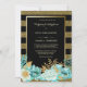 Este elegante convite de casamento combina moderno e chic com o tradicional floral de casamento. Apresenta uma imagem impressionante da menta e das flores brancas coloridas, com um embelezamento dourado no fundo. A imagem é colocada sobre um quadro de ouro brilhante. Seu texto personalizado está em ouro claro no centro. Tudo é colocado sobre um fundo preto dramático e falso de faixa de ouro brilhante. A parte de trás do convite é preto sólido. Elegante, moda, e apropriado para casamentos em qualquer estação!