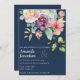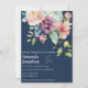Convite Floral de Casamento Floral de marinho Azul-Vidro Este cartão de convite de casamento personalizável apresenta uma tipografia minimalista próxima a um arranjo colorido de rosa de aquarela em um fundo azul-marinho. Para personalização mais avançada deste design, por exemplo, alteração do layout, da fonte ou do tamanho do texto, clique no botão "PERSONALIZAR" acima. Contacte-nos para obter mais elementos de coordenação (guarde a data, os números das tabelas, os fundos de fotografias, etc.) em reviva.designs@gmail.com