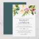 O convite para o casamento floral elegante e moderno apresenta um buquê de flores de aquarela etéreas em tons de rosa-pincel, creme e framboesa, com sotaques botânicos verdes e exuberantes. Personalize com seus detalhes de casamento em elegante tipografia azul da meia-noite. Cartões invertidos a verde-jasper sólido.