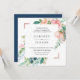 Lindas flores de aquarela e folhagem em tons de trendy de rosa, pêssego, branco e verde com sotaques de canto rosa dourado, convite elegante para casamento. A parte traseira da placa apresenta cor sólida de panqueca de mirtilo. Personalizar texto, estilo de fonte, cor e tamanho.