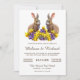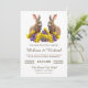 Surpreenda seus convidados com este convite elegante do casamento que caracteriza coelhos bonitos com tipografia moderna contra um fundo branco. Adicione simplesmente seus detalhes do evento neste modelo fácil de usar para fazer-lhe um convite um--um-amável. Lance o cartão sobre para revelar um teste padrão marrom e branco das listras na parte de trás do cartão.
