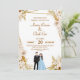 Convite de casamento floral dourado e bege