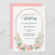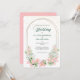 Um quadro de ouro duplo, oval, é decorado com flores cor-de-rosa pastel e folhas verdes moles no fundo deste bonito convite para o casamento. Seu texto personalizado está em verde e cinza correspondentes no centro. O terceiro também tem um espumante spray de confete de ouro. As imagens e o texto são colocados sobre um fundo branco elegante. A parte de trás do convite está combinando o pastel cor-de-rosa, com a mesma camada de confetti. Linda, moderna e chique! *Obrigados para Criação de LABF para as imagens florais neste design.