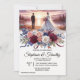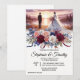 Convite Floral Elegante para Casamento com Noiva e Groom em um lago e Rosa, Rosas Brancas e Burgudy
