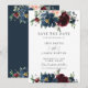 Este convite de casamento elegante apresenta uma bela composição floral em aquarela nas cores rosa, azul marinho e burgundy. Concebido para combinar com a nossa coleção de casamento Elegant Blooms. Personalize-o com seus detalhes de forma fácil e rápida, basta pressionar o botão personalizar para reorganizar e formatar o estilo e a posição do texto. (c) The Happy Cat Studio