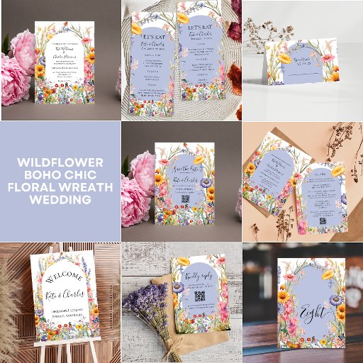 Wildflower boho Chic Floral Wreath wedding inviteCriado por BiAs Shuja