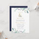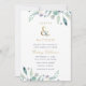 Barato personalizado de convites de casamento impressos personalizados com seus detalhes de evento. Este elegante design apresenta uma folha de alumínio dourada falso com folhagem azul e verde delicada de cor d'água sobre fundo branco. Use as ferramentas de design para personalizar o texto, editar as fontes e cores ou adicionar suas próprias fotos para criar um convite de casamento de classe e na moda.