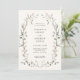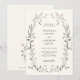 Elegante e sofisticado, este convite de casamento apresenta lindas flores silvestres pastéis cor-de-rosa, roxas e azuis pintadas à mão em aquarela e folhagens de cor sálvia dispostas em uma adorável coroa vintage em um fundo marfim. O verso inclui um belo buquê correspondente com o monograma da noiva e do noivo e um site de casamento opcional.