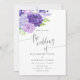 Convites de casamento floral de aquarela com cor do ano 2018 ultravioleta com tons roxos e verdes senosos. As flores incluem hidrangea, lavanda, peonias e rosas.