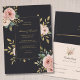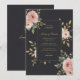 Elegante e romântico, este convite de casamento floral preto apresenta rosas suaves e folhagens delicadas com acentos dourados sobre um fundo escuro rico. O layout refinado cria uma primeira impressão atemporal e sofisticada para o seu dia especial.