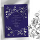 Celebre em estilo elegante com este convite de casamento azul real, adorado com delicadas ilustrações botânicas de prata e um roteiro gracioso. Perfeito para o inverno ou casamentos formais, este design combina romance moderno com sofisticação do eterno, criando uma afirmação ousada mas refinada.