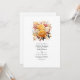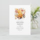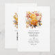 Convite de casamento floral em tons de bege quente, um toque de amarelo e dourado, com relógio de sol/pó dourado. Ideal para um casamento no jardim. O código QR no verso direciona para o site do seu casamento, onde as pessoas podem saber mais e responder.