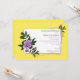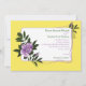 Convite para o casamento floral amarelo de rosa violeta violeta, com um belo rosa selvagem, roxo, com folhas verdes escuras, linhas onduladas roxas e elementos de meio tom em fundo branco e amarelo de milho. Este design floral contemporâneo com um toque de safra é perfeito para um casamento moderno ou tradicional de primavera, verão ou outono. Essa elegante e romântica design pode ser usada em outras ocasiões especiais, como noivados ou aniversários. Esquema de cores: violeta roxo, amarelo, verde escuro branco.