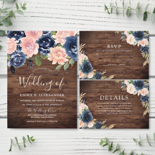 Rustic Blush & Navy Floral Wedding Invitation SetCriado por Chris Ballester