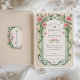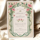 Esta bela suíte de convite de casamento exude elegância e charme, perfeita para anunciar seu dia especial. A frente apresenta um intrincado design floral com flores cor-de-rosa macio e folhas verdes sábias, cercando um delicado espaço oval branco onde seu monograma pode ser personalizado. O verso do convite revela uma continuação harmoniosa do tema floral, com um arranjo refinado que enquadra os detalhes do casamento. Este convite usa uma paleta de cor-de-rosa-pincel, verde-sábio e toques sutis de verde profundo para uma estética natural e romântica. A fonte do eterno adiciona um toque clássico ao design moderno, fazer que seja a escolha ideal para o seu casamento inspirado na vintage.
