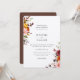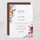 Cor d'água elegante. Forragens florais e folhagem de outono, convite para casamento. Modelo de design de tipografia moderna e simples. A parte traseira da placa coordena a cor marrom sólido.