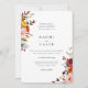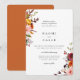 Cor d'água elegante. Forragens florais e folhagem de outono, convite para casamento. Modelo de design de tipografia moderna e simples. A parte traseira da placa coordena cor laranja sólida queimada.