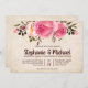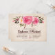 Lindas rosas rosa rusticadas/vintage design floral em fundo de burlap verde (você pode mudar a cor de fundo para fazer sua própria cor de burlap para o fundo do design) cartão de convite para casamento